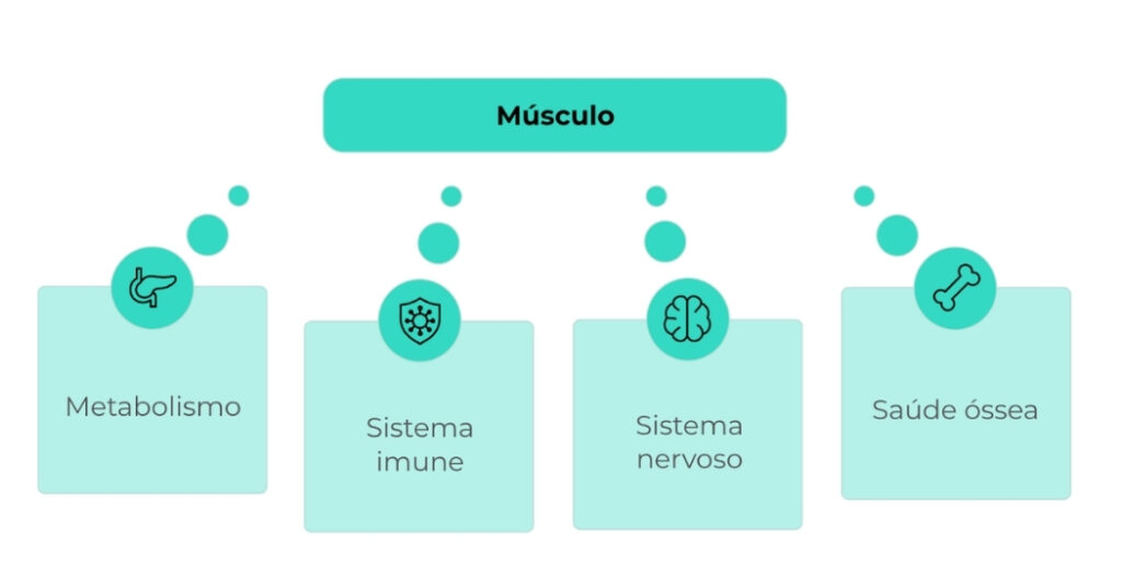 O músculo esquelético não exerce apenas função mecânica. Ele também atua como órgão metabólico e endócrino, com influência sistêmica relevante.